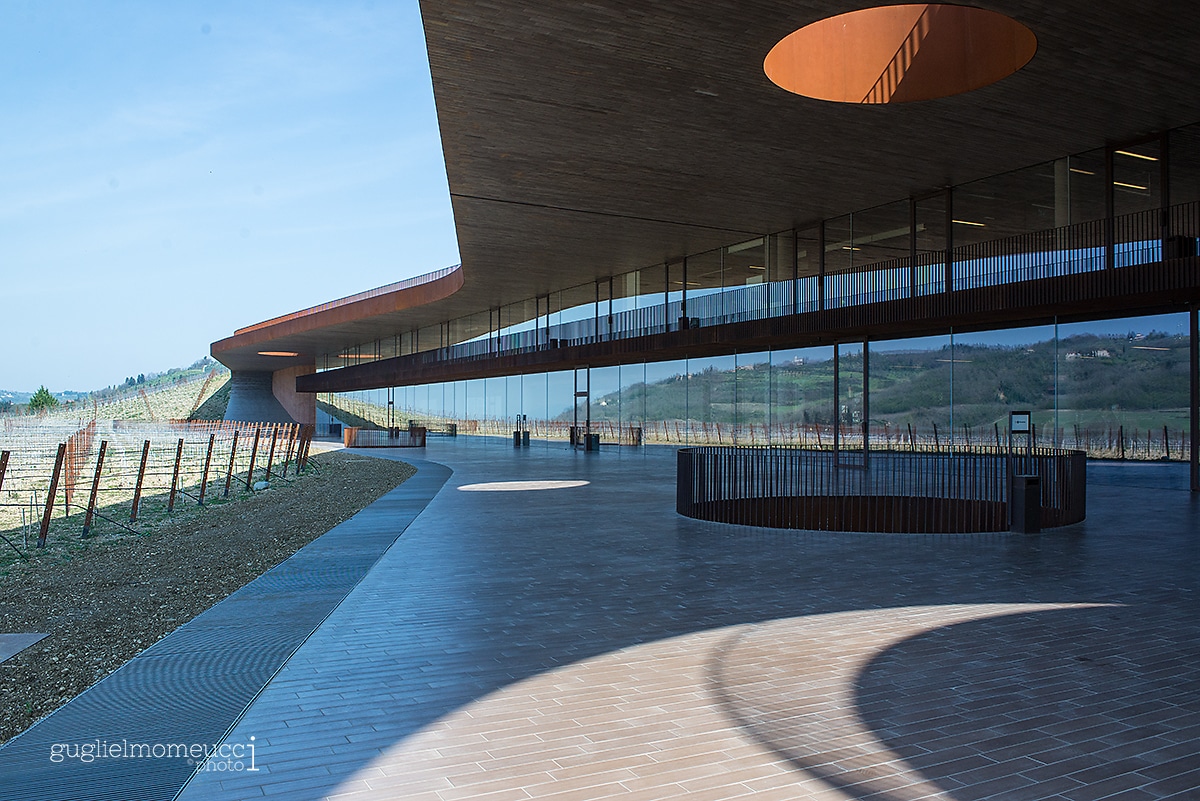 La cantina è un opera di architettura unica nel suo genere, realizzata dallo studio Archea Associati di Firenze in 7 anni di lavori, e che lavori: è stato creato uno scavo all’interno della collina, costruita la cantina e ricoperta con la terra che era stata tolta.