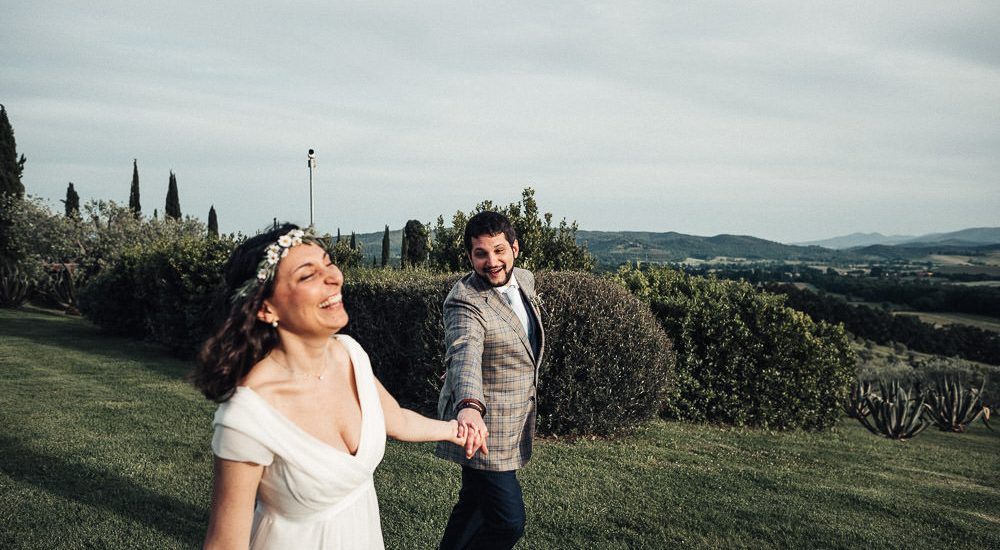 Inizia il nostro viaggio verso “l’altare”. Percorro dietro Valeria e suo padre questo viaggio, in quei momenti sembra come se il tempo si fermasse, a scandire il tempo solo il click della macchina fotografica. Lungo l’uliveta posso quasi sentire il cuore di Valeria, che come una bambina stringe il braccio del papà, la sua ancora, l’ultimo gesto forse di una bambina che sta diventando donna. E poi eccoci arrivare nel prato rialzato dove era stato situato “l’altare”, il suo Matteo è pronto lì ad accoglierla, prenderla dalle braccia paterna e stringerla fra le sue.
